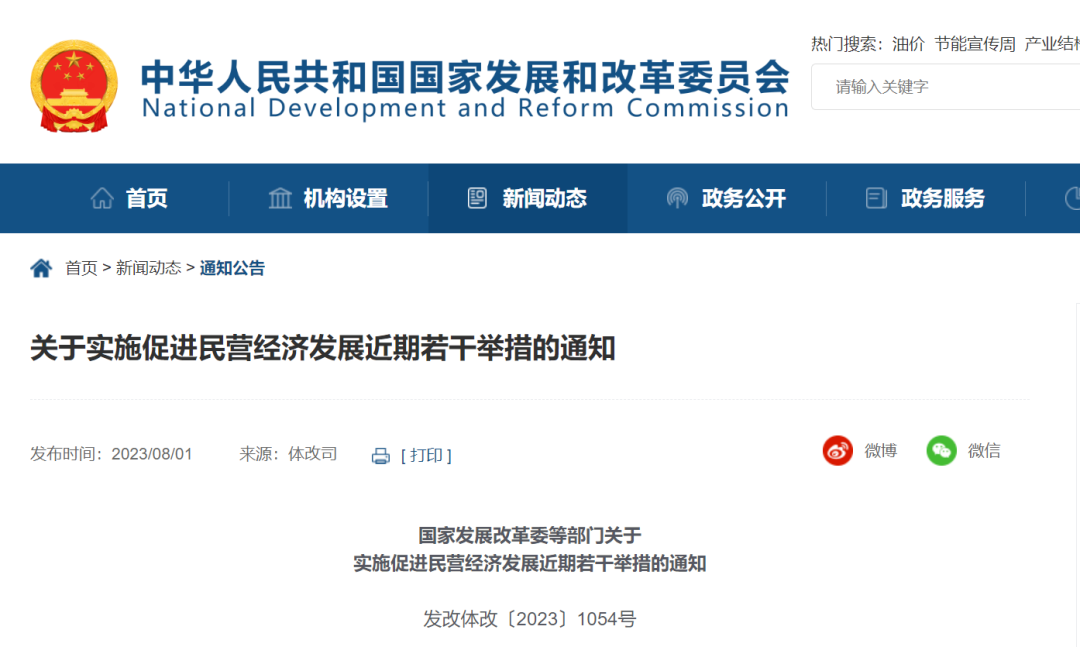 實施促進民營經(jīng)濟發(fā)展近期若干舉措的通知