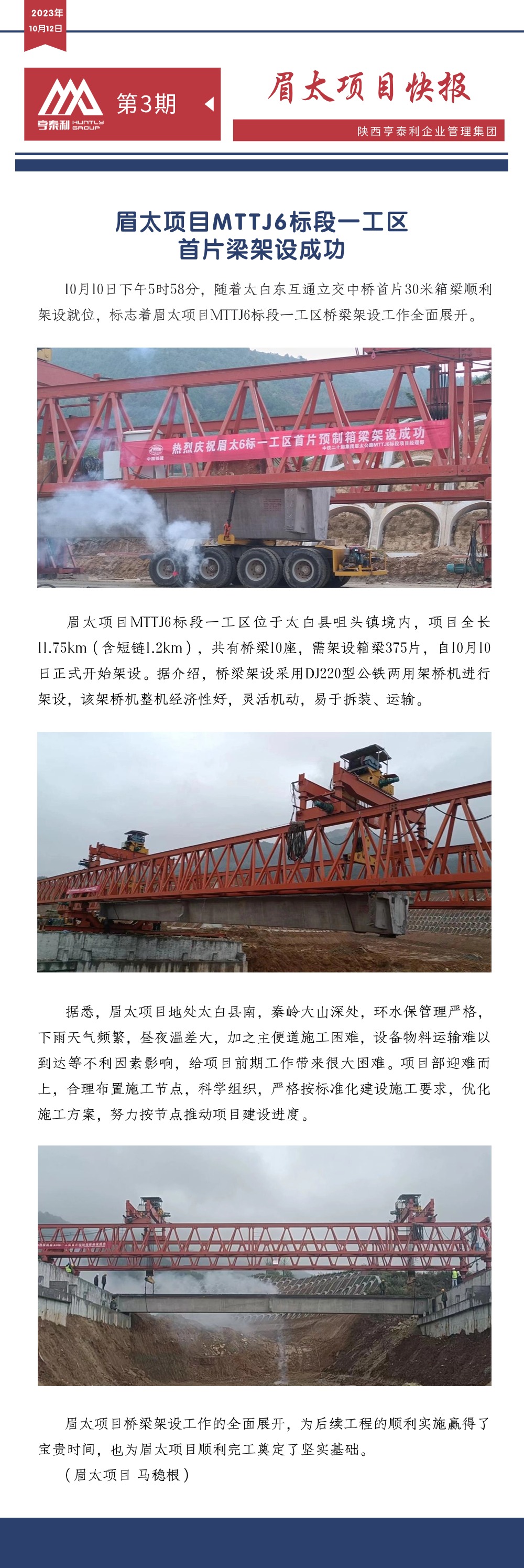 | 眉太項(xiàng)目MTTJ6標(biāo)段一工區(qū)首片梁架設(shè)成功 |