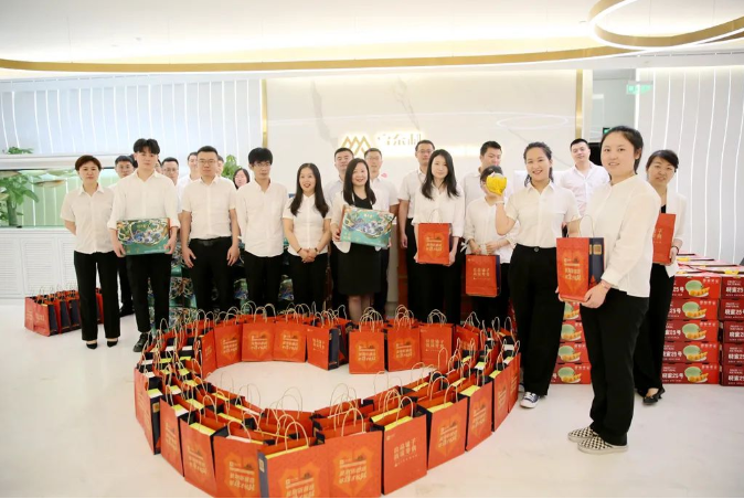 上午10時許,各種“粽禮”滿滿當(dāng)當(dāng)?shù)臄[放在集團(tuán)職場大廳,有端午香粽、零食禮盒、哈密瓜禮盒及夏日解暑飲品。在福利發(fā)放現(xiàn)場,每位員工臉龐上洋溢著歡樂的笑容,大家你一言,我一語,紛紛拍照發(fā)朋友圈,“曬”出集團(tuán)送給大家的端午福利,喜悅之情溢于言表。