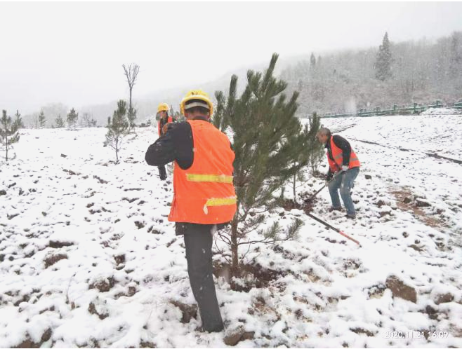 眼下正值數(shù)九時(shí)節(jié),天寒地凍,冷風(fēng)刺骨,但旬鳳高速綠化工地上依舊一派繁忙的景象。