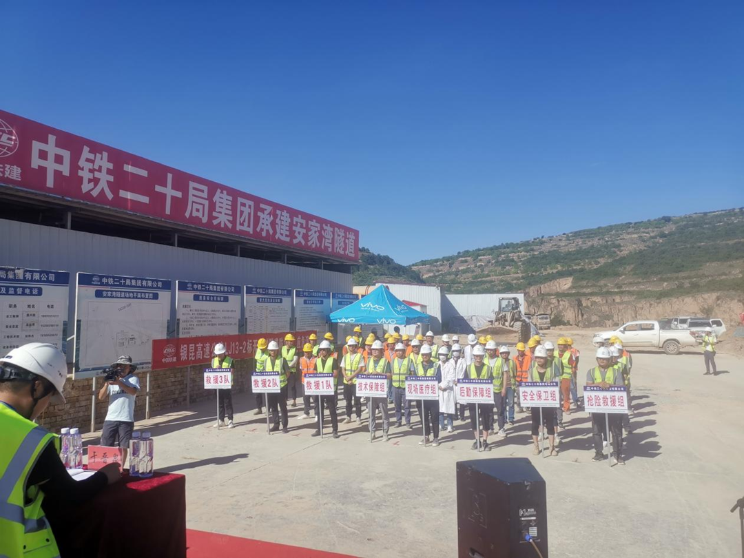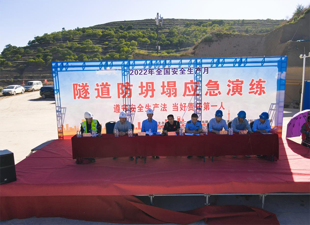 6月份是全國第21個(gè)安全生產(chǎn)月,為積極響應(yīng)“遵守安全生產(chǎn)法,當(dāng)好第一責(zé)任人”的活動(dòng)主題,同時(shí)為提高參建人員安全事故應(yīng)急能力,驗(yàn)證事故應(yīng)急預(yù)案的可執(zhí)行性,儲(chǔ)備參建人員隧道逃生及搶救知識,掌握隧道逃生的應(yīng)變技能,增強(qiáng)自我保護(hù)能力,減少財(cái)產(chǎn)損失,2022年6月29日下午16:30時(shí),銀昆高速公路LJ13-2標(biāo)項(xiàng)目部在安家灣隧道出口組織開展了隧道防坍塌應(yīng)急演練活動(dòng)。 此次演練共有項(xiàng)目部50余人參與,項(xiàng)目經(jīng)理楊峰作為項(xiàng)目部安全生產(chǎn)的第一責(zé)任人和演練總指揮,對本次演練工作高度重視,他認(rèn)真審定演練方案,下達(dá)演練命令,指導(dǎo)演練工作。